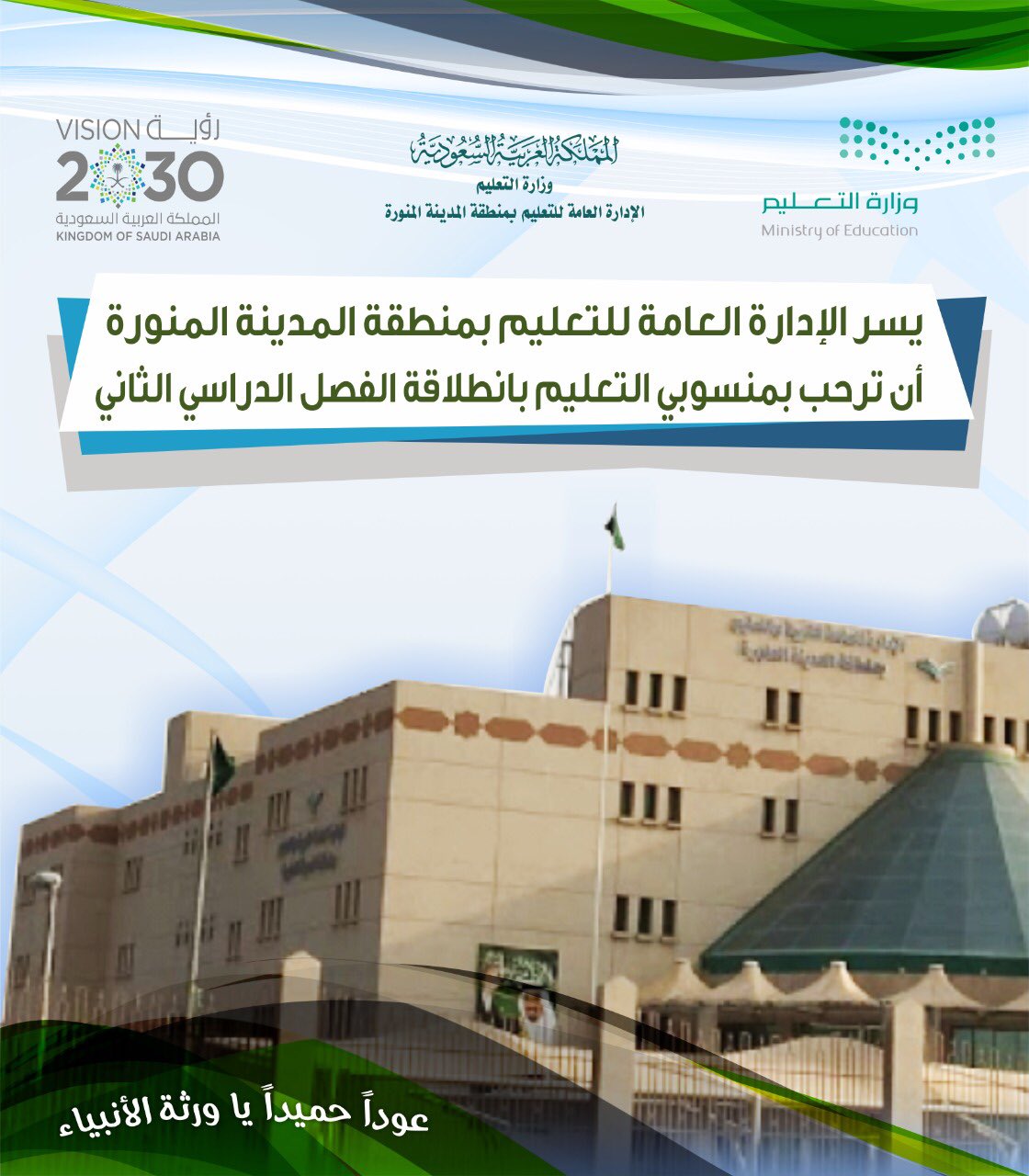 إدارة تعليم المدينة المنورة On Twitter يسر الإدارة العامة للتعليم بمنطقة المدينة المنورة أن ترحب مع انطلاقة الفصل الدراسي الجديد بمنسوبي التعليم و تتمنى لهم التوفيق تعليم المدينة المدينة المنورة Https T Co Icala8mgu6