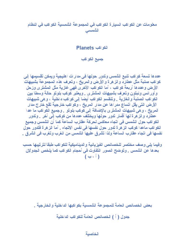 اسماء الكواكب ومحتواها موقع الكواكب السيارة للصف الخامس
