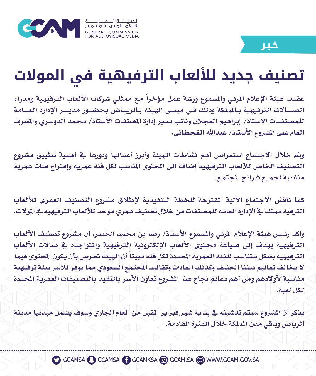 الهيئة العامة للإعلام المرئي والمسموع On Twitter بماذا يتميز التصنيف العمري السعودي للألعاب الإلكترونية هيئة الإعلام المرئي والمسموع