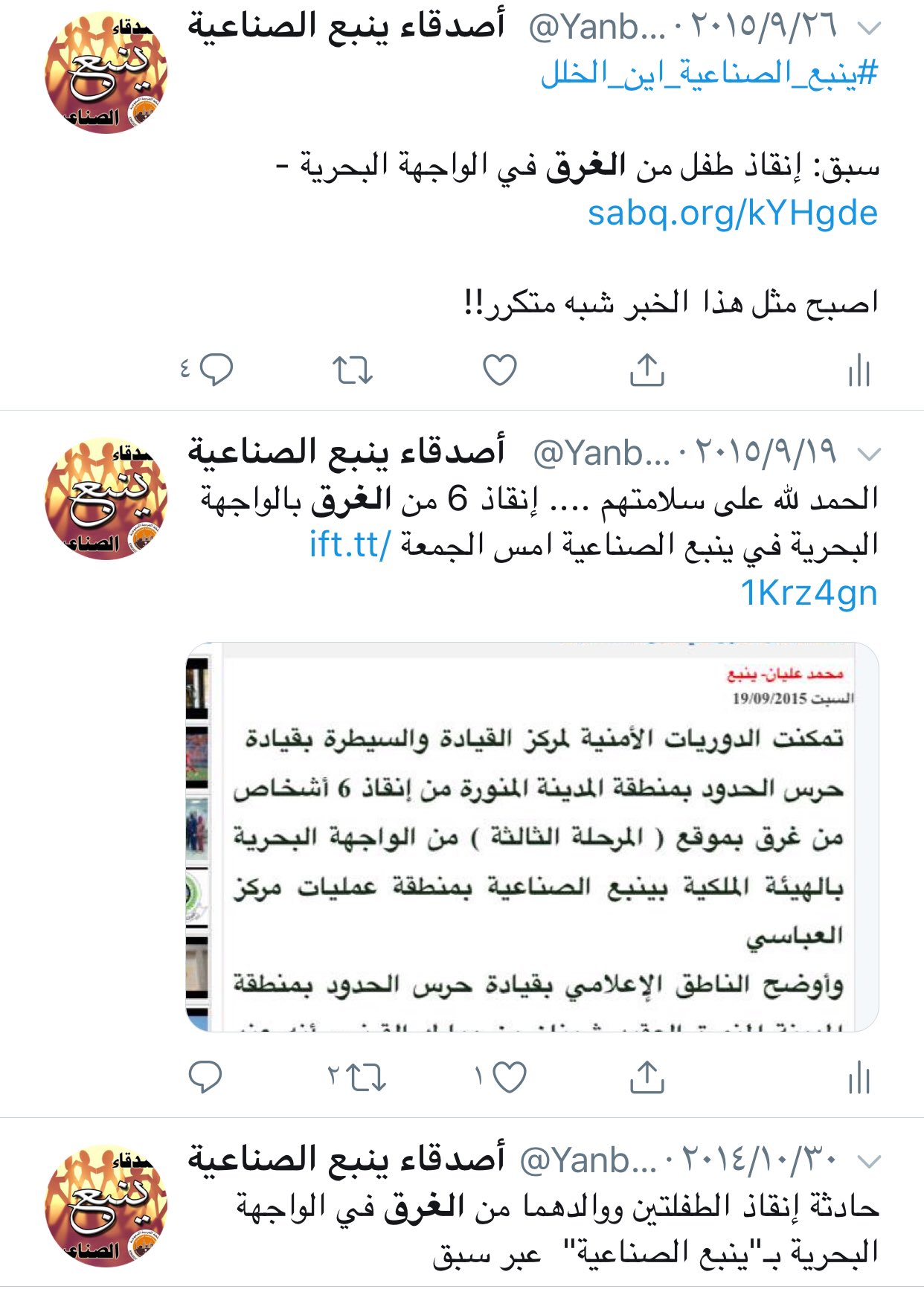 أصدقاء ينبع الصناعية Twitterren لا تكاد تمر اسابيع إلا ونفجع بحالة غرق بالواجهة البحرية في ينبع الصناعيه في ظل وجود عدة أسئلة هل يوجد مختصوا سلامة شواطيء بالإدارة المشرفة على الواجهة هل يوجود منقذون