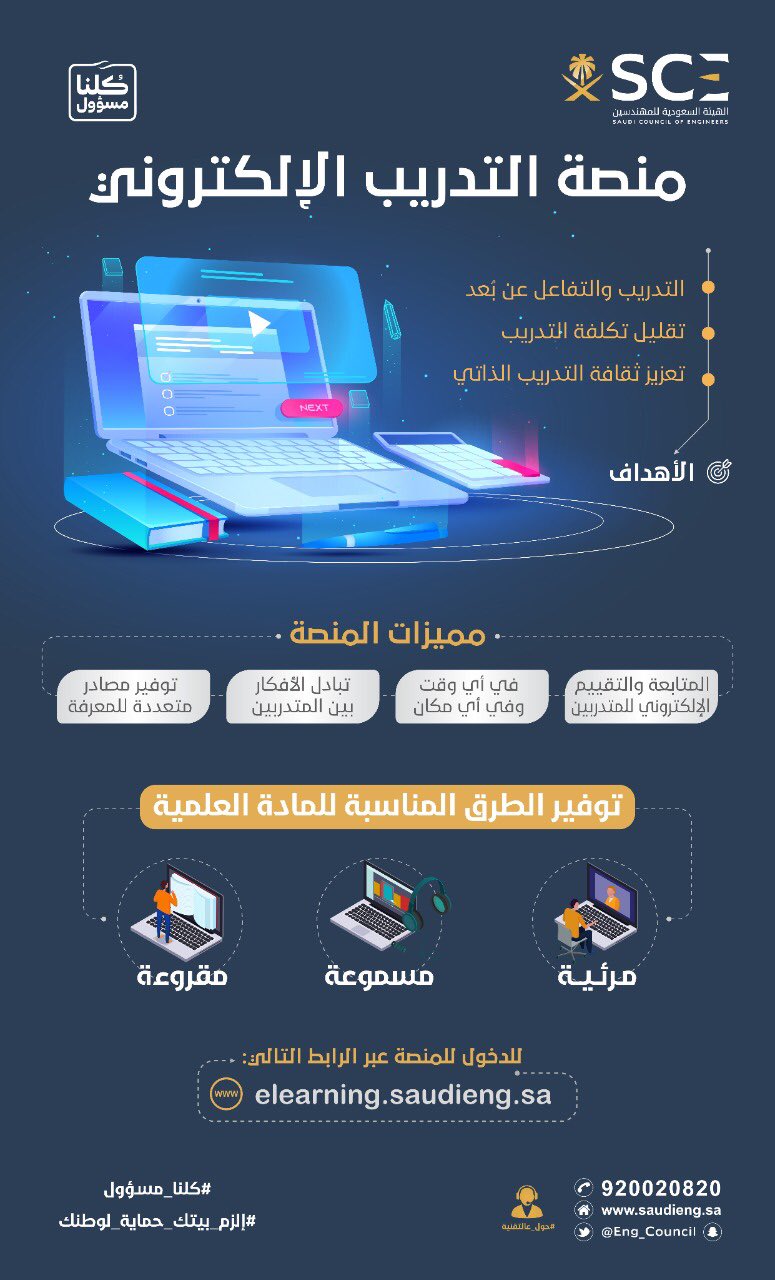 الهيئة السعودية للمهندسين On Twitter هيئة المهندسين تطلق منصة التدريب الإلكتروني تعزيز ا لثقافة التعلم و التدرب عن بعد ويمكنكم التسجيل من خلال Https T Co Bng8jjv4jt هيئة المهندسين عن بعد Https T Co Cogevrf5ta